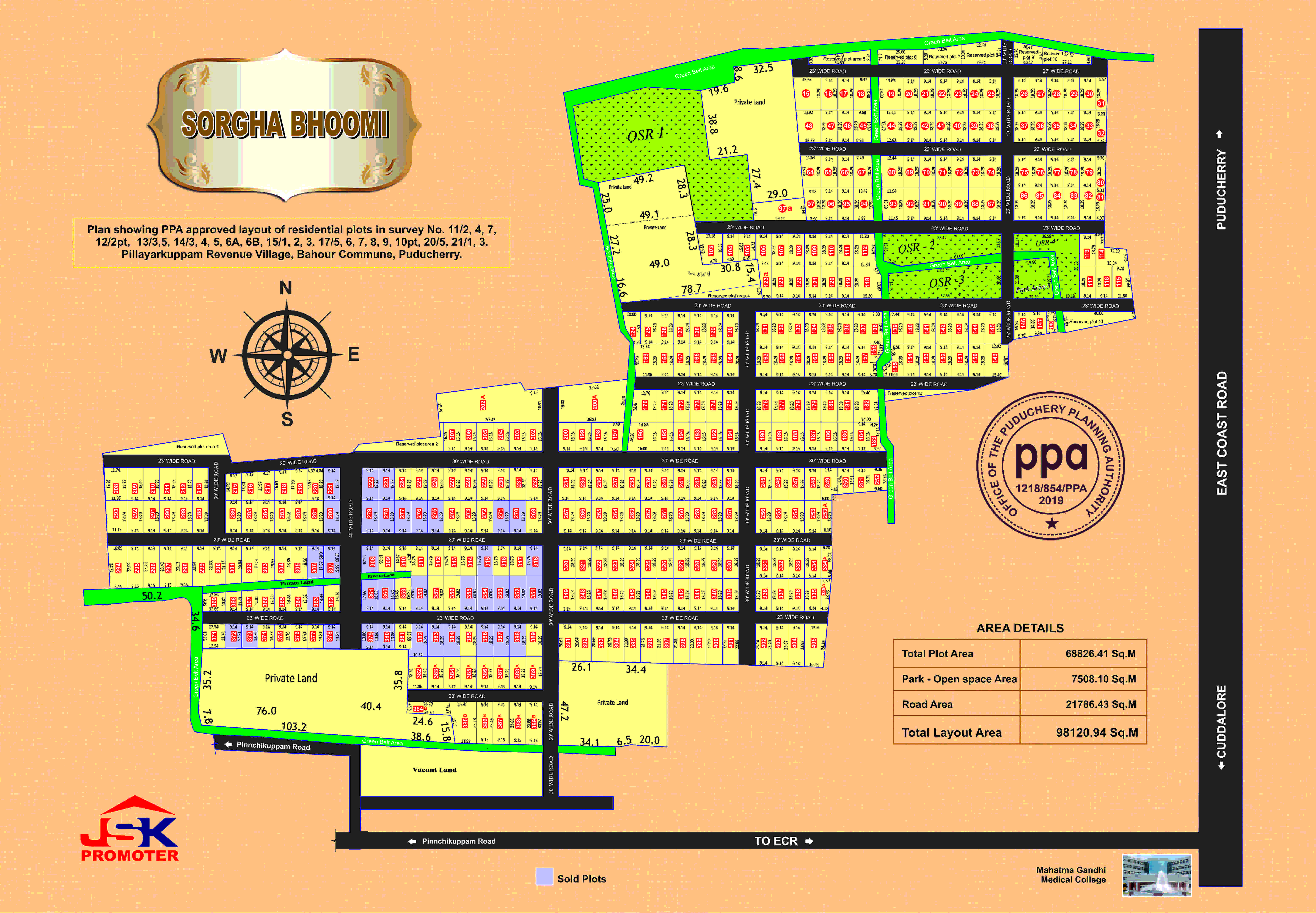 Sorghabhoomi, a unique project with extraordinary amenities and intelligent landscaping. It has been spread over 25 Acres with PPA approval which is centrally located off Puducherry to Cuddalore Road. A complete integrated township which has 394 Plots, Community Hall, Shopping mall area.